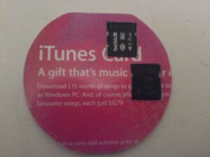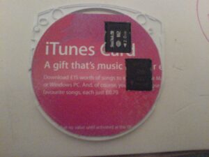 Made using a broken UMD chassis and an iTunes card cut to fit with cutouts made for M2 memory cards.